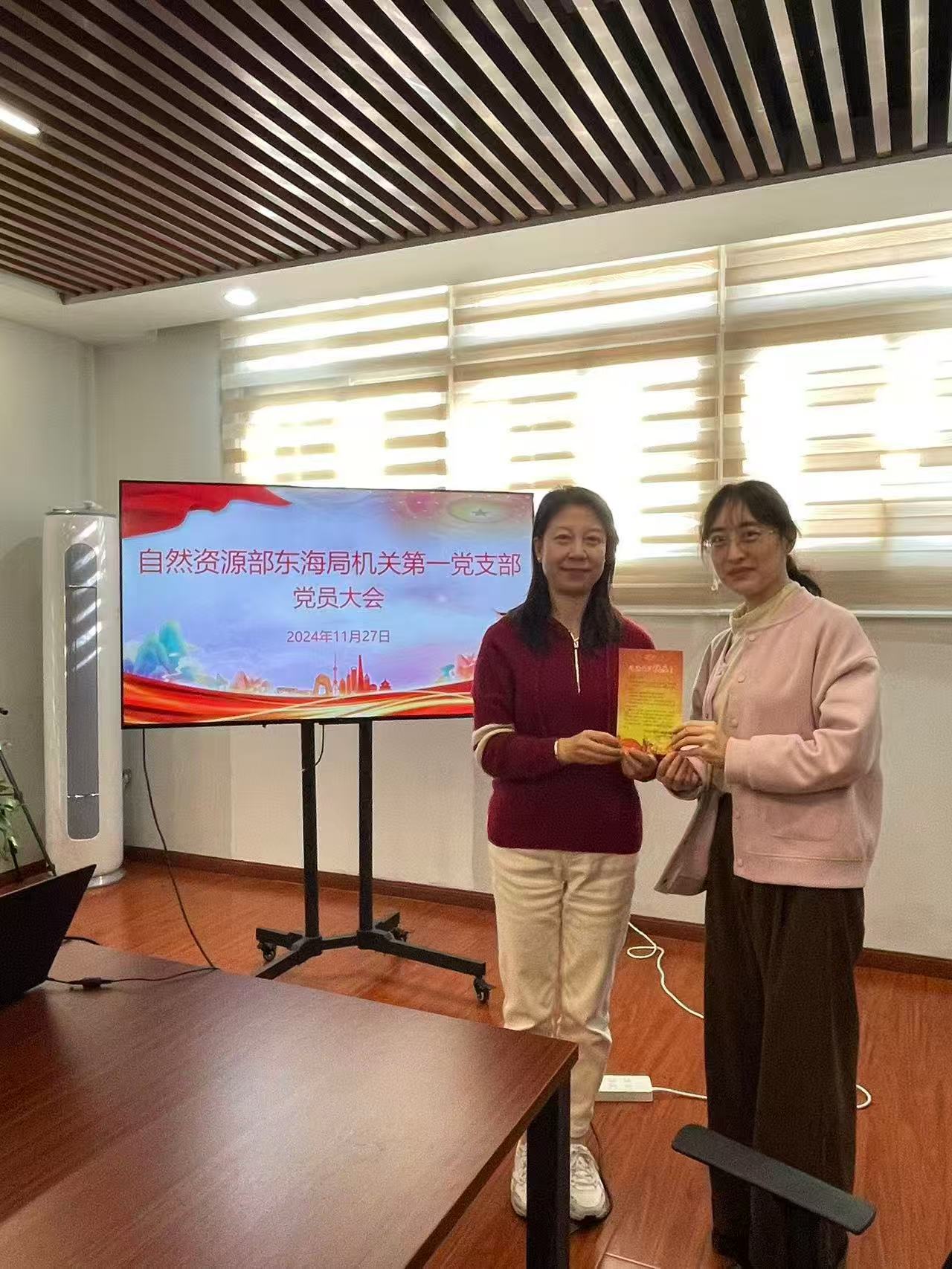 作为机关党支部组织委员,她严格按照上级党组织部署,认真履行岗位职责,以党支部标准化规范化建设为抓手,规范落实“三会一课”、主题党日等组织生活制度,创新建立支部月度学习工作计划清单机制,结合支部实际,探索建立了“党员人人领学”“支委联系点”“传阅清单”等工作模式,推动党员教育管理走深走实,持续增强党组织凝聚力与战斗力。先后在2019、2020、2022、2024年度党员民主评议中获评“优秀”等次,2021年荣获“自然资源部东海局优秀党务工作者”称号,2025年荣获“自然资源部东海局优秀共产党员”称号。