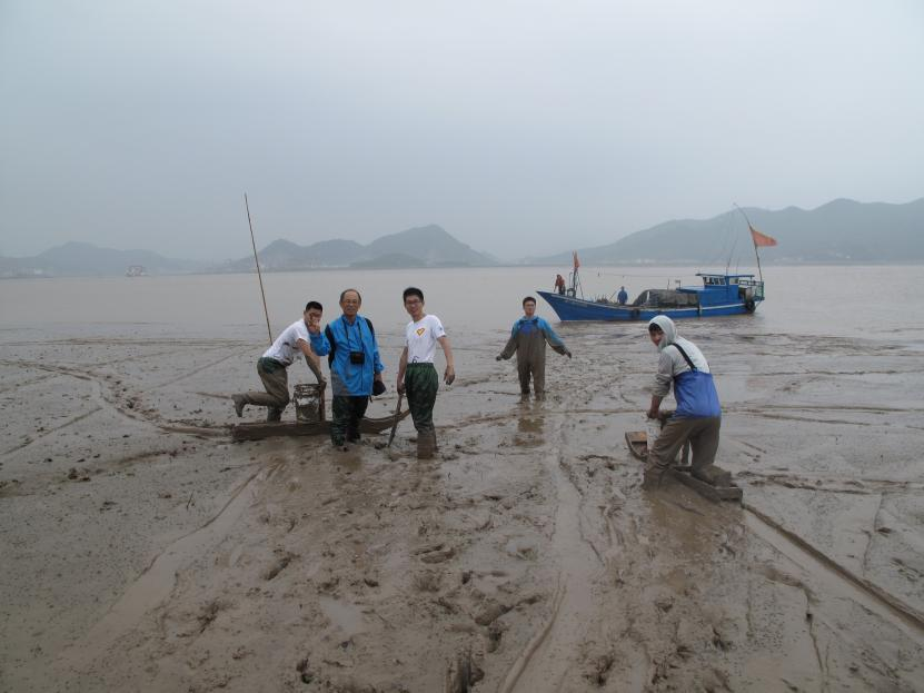 滩涂潮间带生物调查工作照(王航俊左起第3)