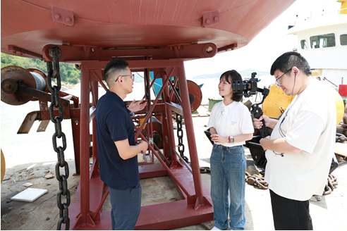 接受浙江电视台采访介绍核电冷源预警监测工作(王航俊左起第1)