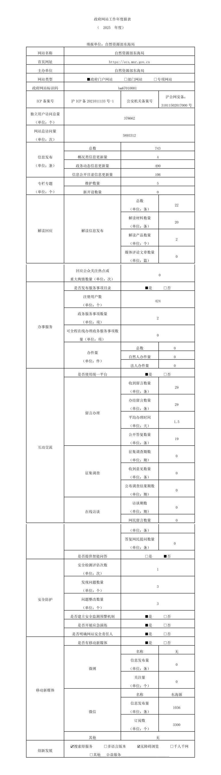 东海局2025年度政府网站工作年度报表